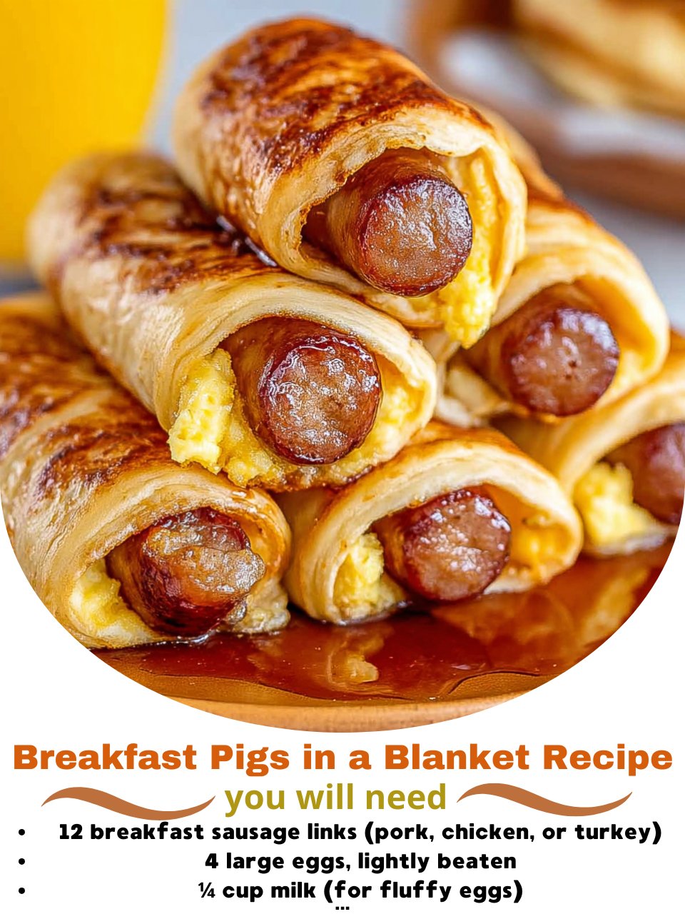 Here’s a delicious and easy Breakfast Pigs in a Blanket recipe — a fun morning twist on the classic! Think fluffy pancake or crescent dough wrapped around sausage, optionally filled with cheese or egg. Great for busy mornings, brunches, or make-ahead breakfasts.