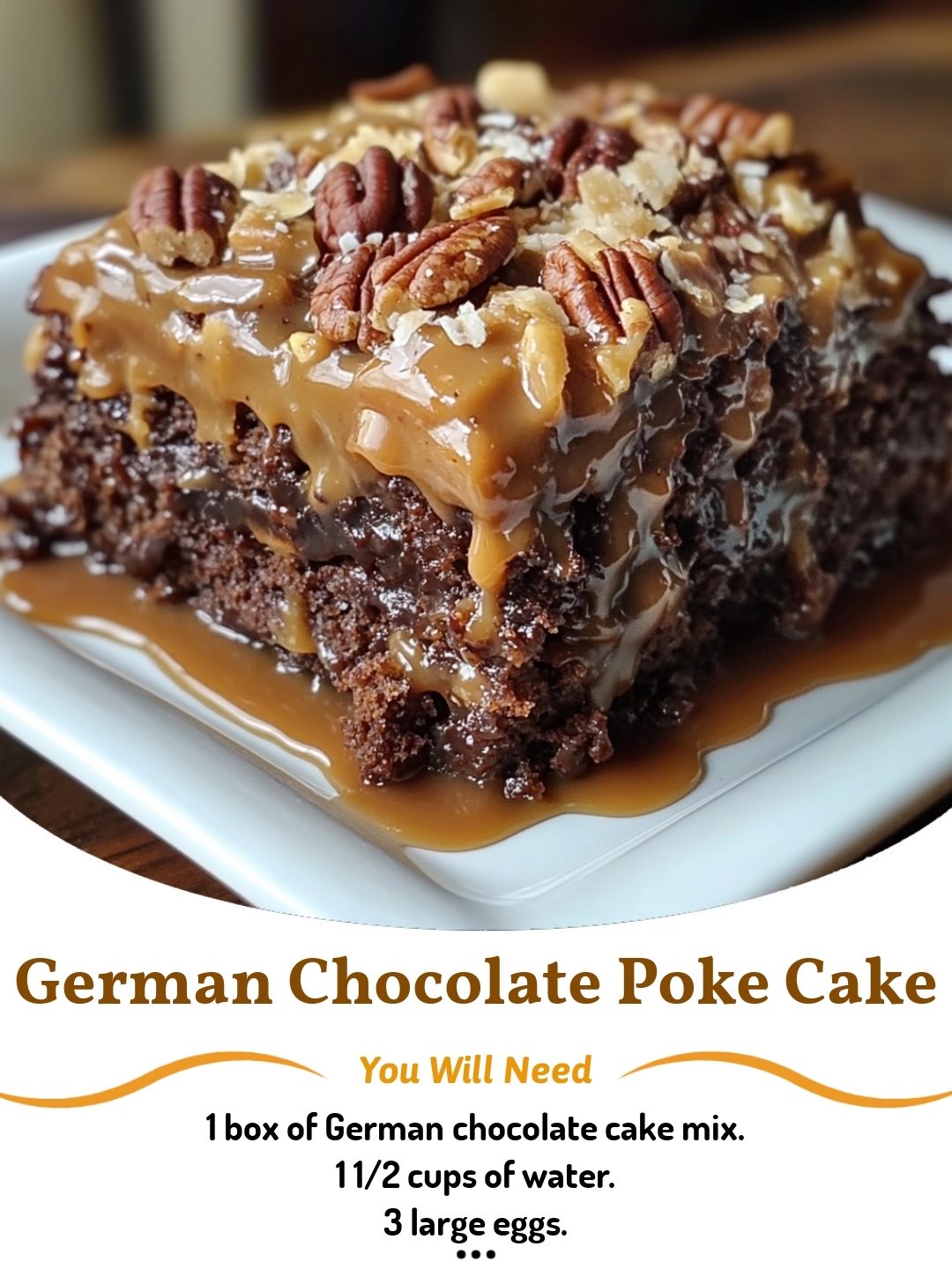 This German Chocolate Poke Cake combines the classic flavors of German chocolate cake with a sweet caramel filling and a creamy pecan-coconut frosting. A dessert that’s sure to impress! The first time I made this for my family gathering, I watched as everyone’s eyes widened with that first bite into the moist cake filled with caramel goodness.