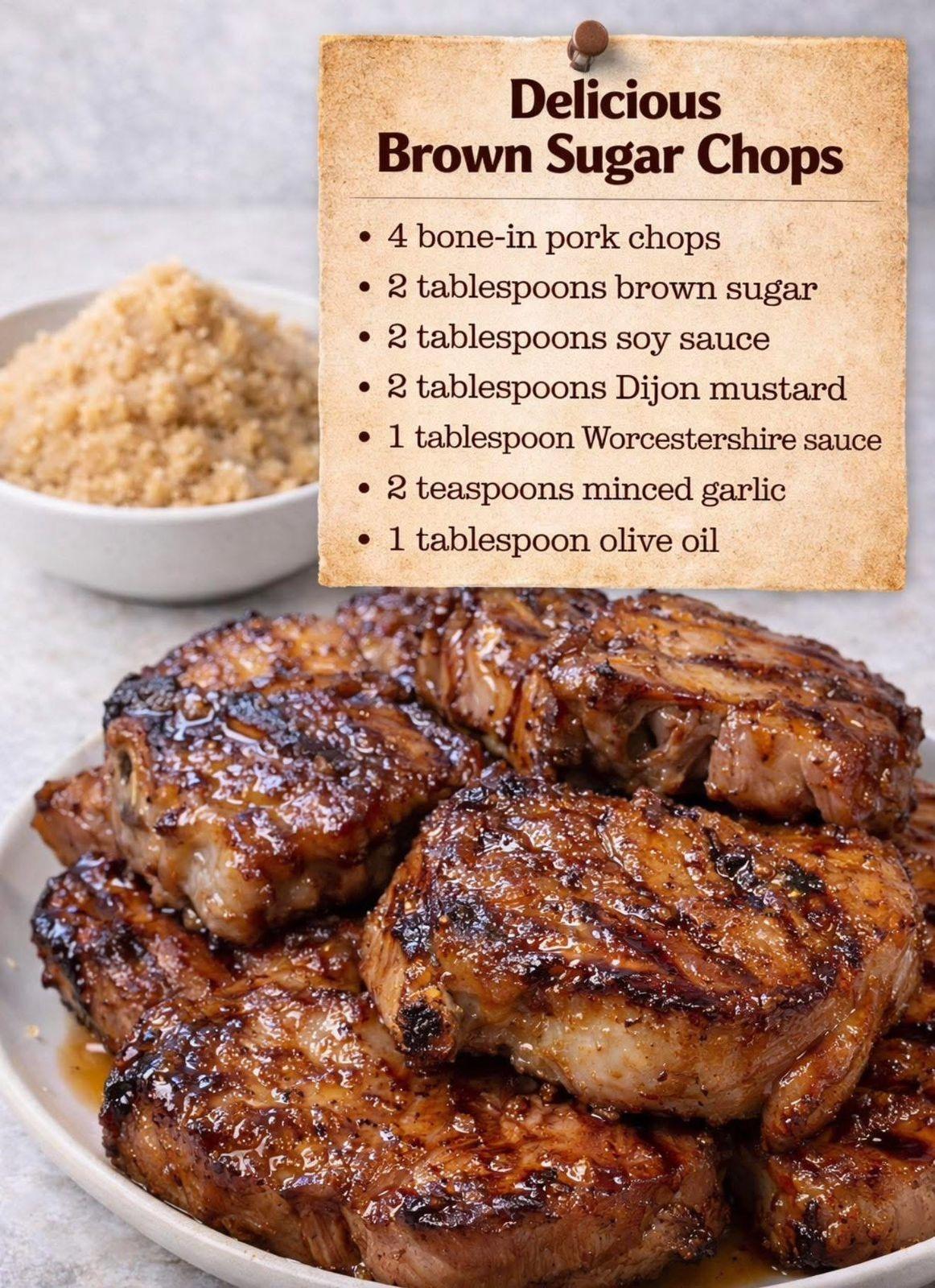 Brown Sugar Glazed Pork Chops are a delicious and quick meal perfect for any night of the week! These chops are seasoned to perfection, seared for a golden crust, and then coated in a rich brown sugar and garlic glaze. The sweetness of the glaze perfectly complements the savory pork, making each bite full of flavor. With minimal ingredients and a short cooking time, this dish brings a gourmet touch to the table without the hassle. Perfect with mashed potatoes, rice, or a fresh side salad, it’s a recipe everyone will love!